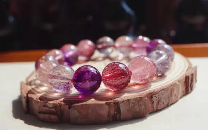 Purple hair crystal hair is generally purple or purple-red, sometimes accompanied by red and black hair, purple hair crystal can also be called super seven crystals. Super heptamine is a co-crystallization of minerals, different proportions of various minerals produce different crystals, fusion of white crystal, smoky quartz, amethyst, rutile, goethite, wolite and yellow phosphate seven kinds of ore, is a very rare crystal variety.